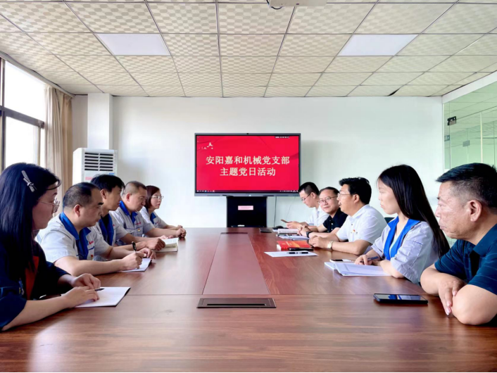 為慶祝中國共產(chǎn)黨成立102周年,深刻領(lǐng)會二十大新修訂黨章的理論內(nèi)涵和精神實質(zhì),加強(qiáng)全體黨員的黨性意識,提高理論素養(yǎng),2023年6月30日下午,安陽嘉和機(jī)械有限公司黨支部組織開展“迎七一、強(qiáng)黨性、以黨建引領(lǐng)企業(yè)高質(zhì)量發(fā)展”主題黨日活動。該活動由嘉和機(jī)械黨支部書記、炬石玄纖科技總經(jīng)理張道林主持,嘉和機(jī)械、炬石玄纖科技董事長蘇林及嘉和全體黨員參與。